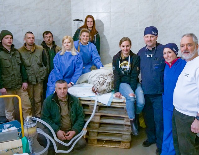 Nemzetközi szakemberekből álló állatorvosi csapat végzett beavatkozást Állatparkunk fehér tigrisén.